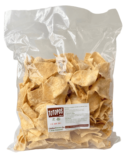 Con Maseca – Son tortillas de maíz nixtamalizadas elaboradas con masa de harina de Maseca importada de México. Los totopos con Maseca son estas mismas tortillas freídas en aceite vegetal. Tienen el olor, el color y el sabor mexicano que muchos ya conocen y que recuerdan cuando Vivian o viajaron a México. Son realmente deliciosas, inigualables y bien chingonas.